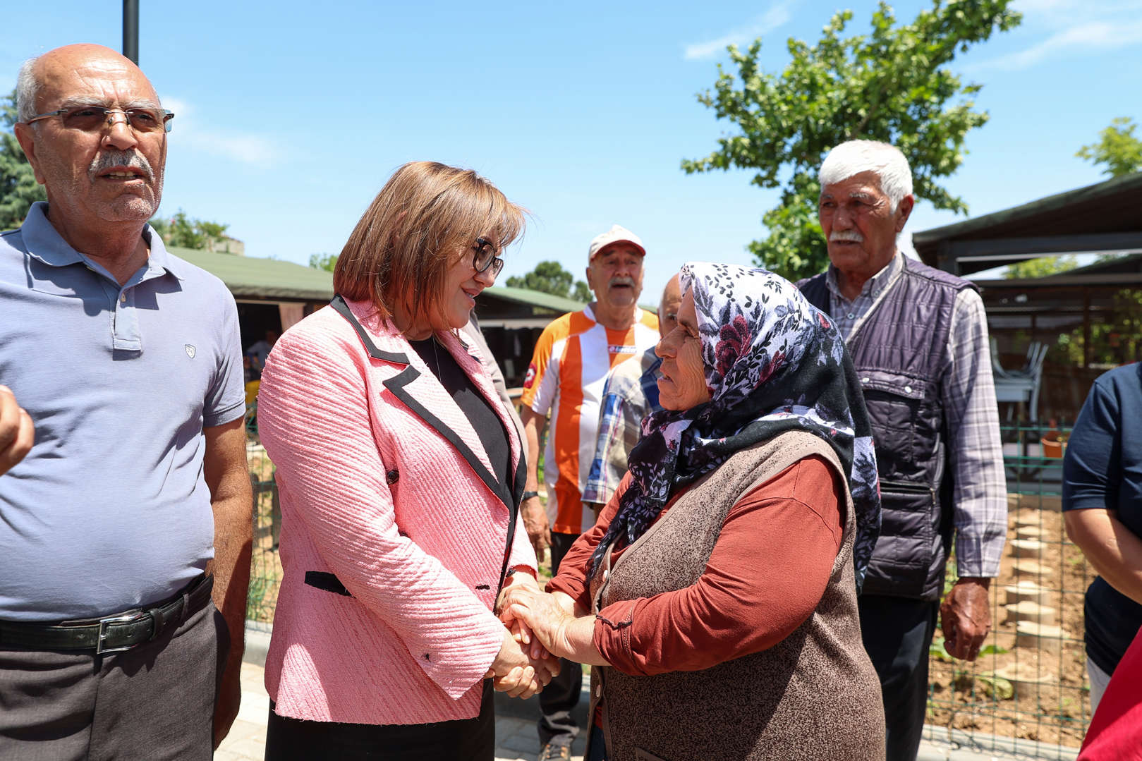 Şehirde bir sahre kültürü var. Ailece bir araya gelme bir parkın içinde de olabiliyor ama böyle hobi bahçeleri ailelerin bizden en çok istediği taleplerinden bir tanesi. Dördüncü etabımızı tamamlamıştık. Şimdi yeni modelimizde biraz daha ahşap ağırlıklı, açık alanın çoğaldığı, kent bostan dedikleri çocukların gelip toprakla, tohumla domates, marul, nane ektiği fidelerini tanıdığı, dede torun bir araya geldiği, ailenin birlikte oturup çayın kahvenin içildiği bir ortam. Bizim açımızdan çok önemli. Çok yüksek bir talep var. Şimdi bu talebin yaklaşık 8 ay önce kurasını çekmiştik. Bugün ilk kez ziyaret etme fırsatım oldu. Çok yüksek memnuniyet var. Dedelerimiz, ninelerimiz memnun olunca torunlarıyla bir araya gelince büyük ailenin güzelliğini, bereketini, huzurunu ve mutluluğunu görüyoruz.
