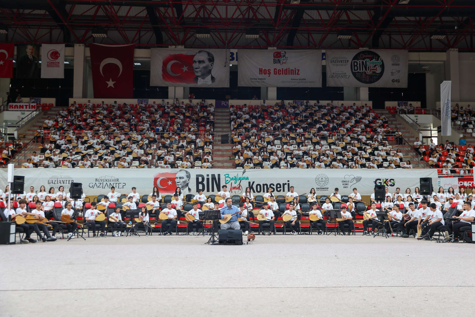 Gaziantep Büyükşehir Belediyesi, Gaziantep Valiliği ve İl Milli Eğitim Müdürlüğü ile Gönüllü Hizmet Vakfı iş birliğinde bin öğrencinin bağlama çaldığı ve 70 öğretmenin korist olarak görev aldığı “Bin Bağlama Bin Umut” konserine Valimiz Kemal Çeber ile katıldık.