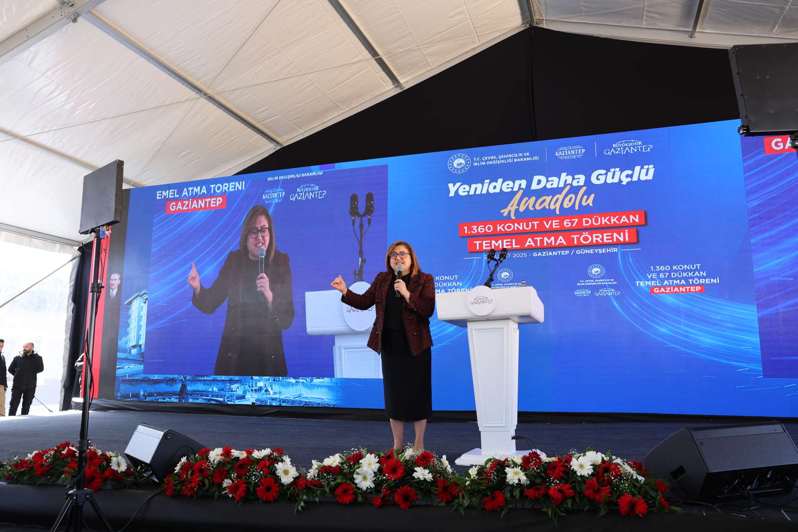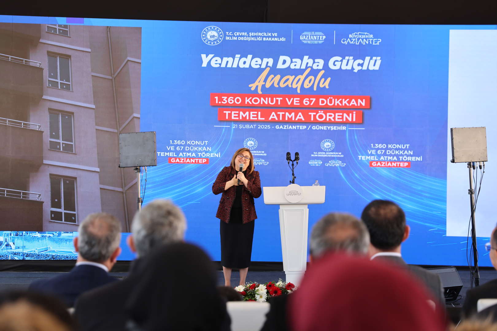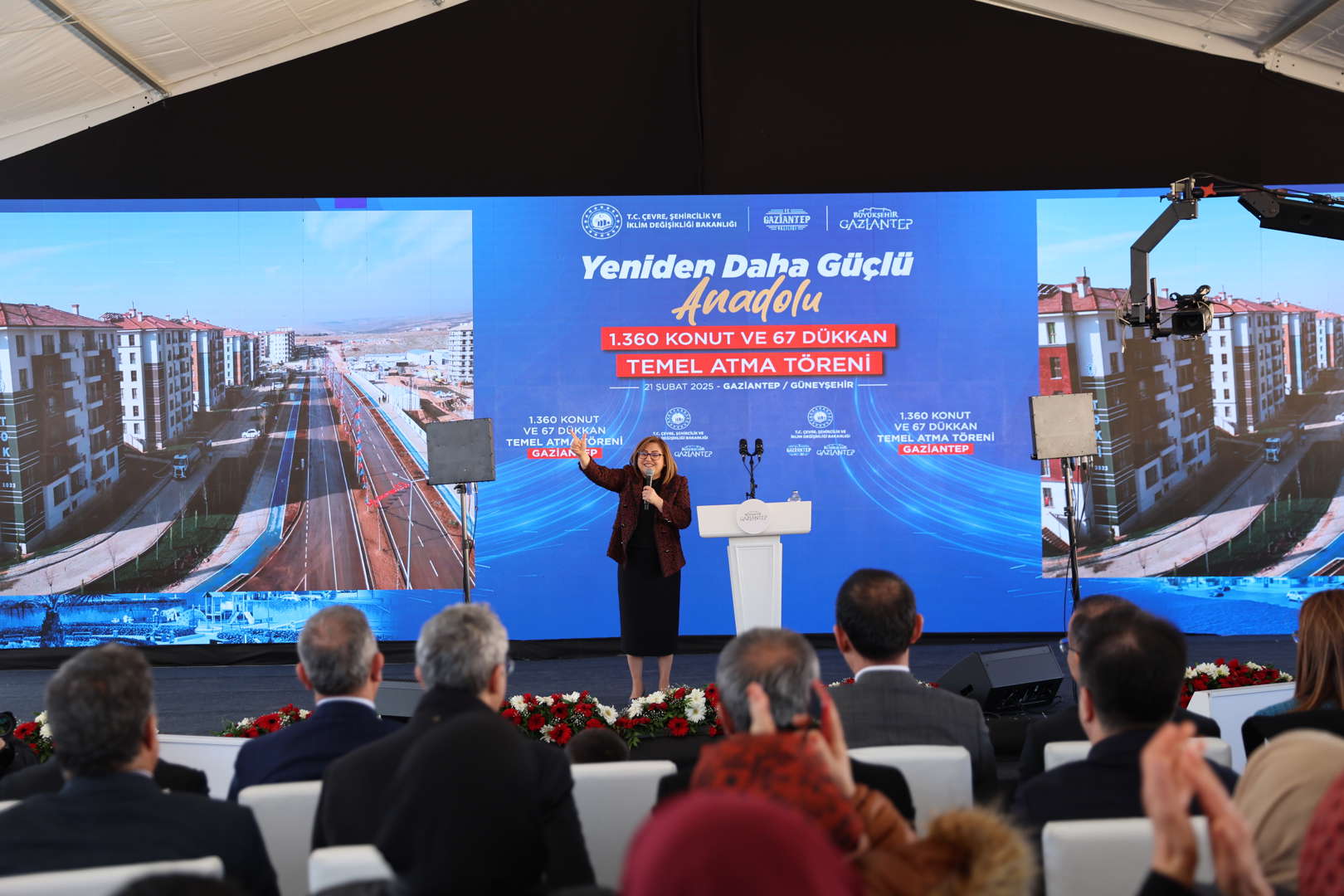Gaziantep için büyük bir adım ile Güneyşehir’de 1360 konut ve 67 iş yeri için temeli attık. Bu özel günde yanımızda olan, bilgi ve birikimi ile bizi hiç yalnız bırakmayan değerli Bakanımız Sayın Murat Kurum’a ve Milletvekillerimize teşekkür etmeyi de bir borç bilirim. Gaziantep için durmadan yorulmadan çalışmaya devam edeceğiz.
