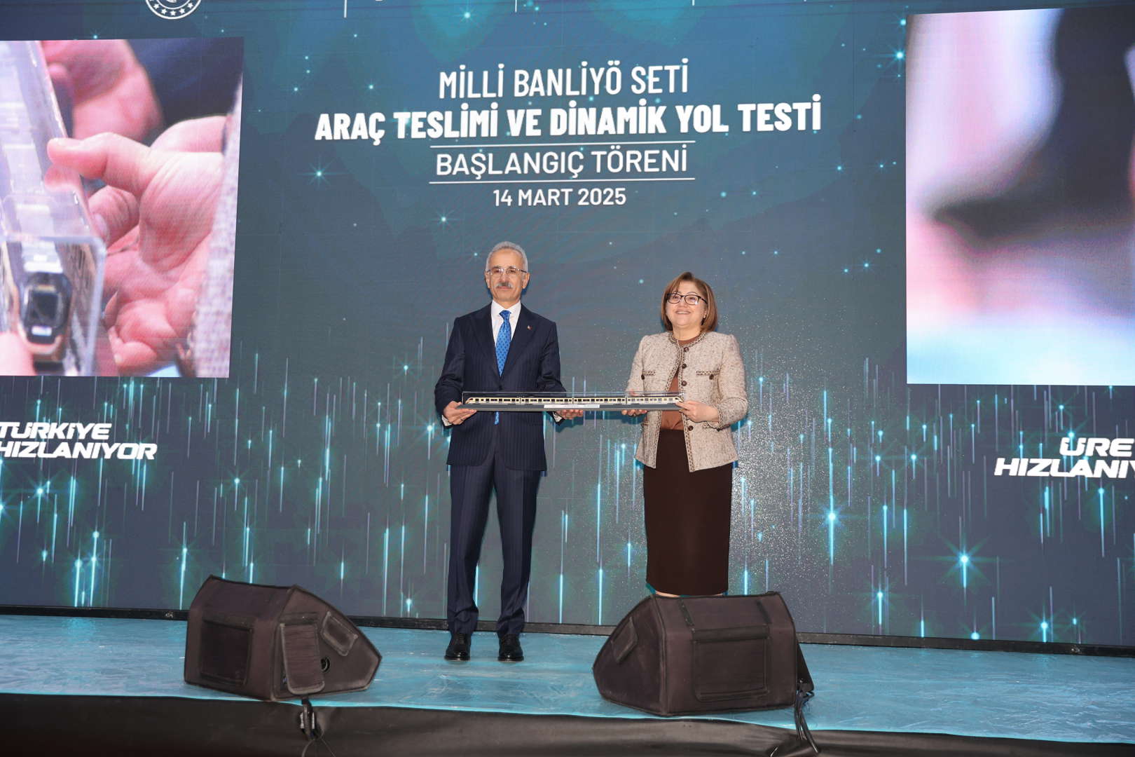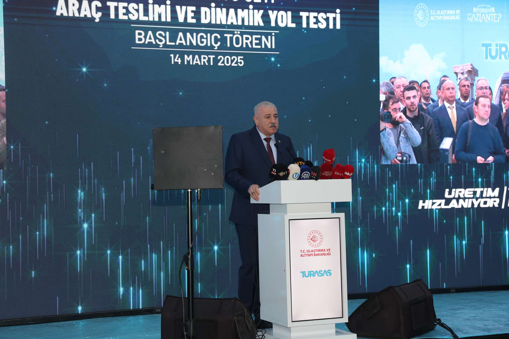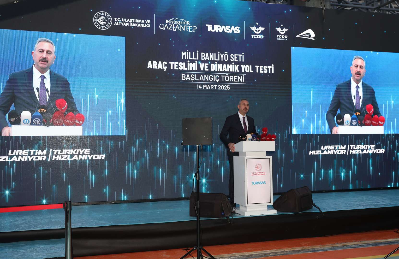 Bu vesileyle ülkemiz için bir mihenk taşı olan projemize verdikleri destekten dolayı Ulaştırma Bakanımız Sayın Abdülkadir Uraloğlu’na hassaten teşekkür ediyorum. En büyük teşekkürü ise, bu milletin istediği zaman her şeyi yapabileceğine dair büyük vizyonunu hepimize aşılayan, iradesiyle her zaman yanımızda olan Sayın Cumhurbaşkanımıza etmek istiyorum. Allah ondan razı olsun. Yolcu kapasitesini 6 kat artıracak olan yeni tren setlerimiz Gazi şehrimize hayırlı uğurlu olsun.