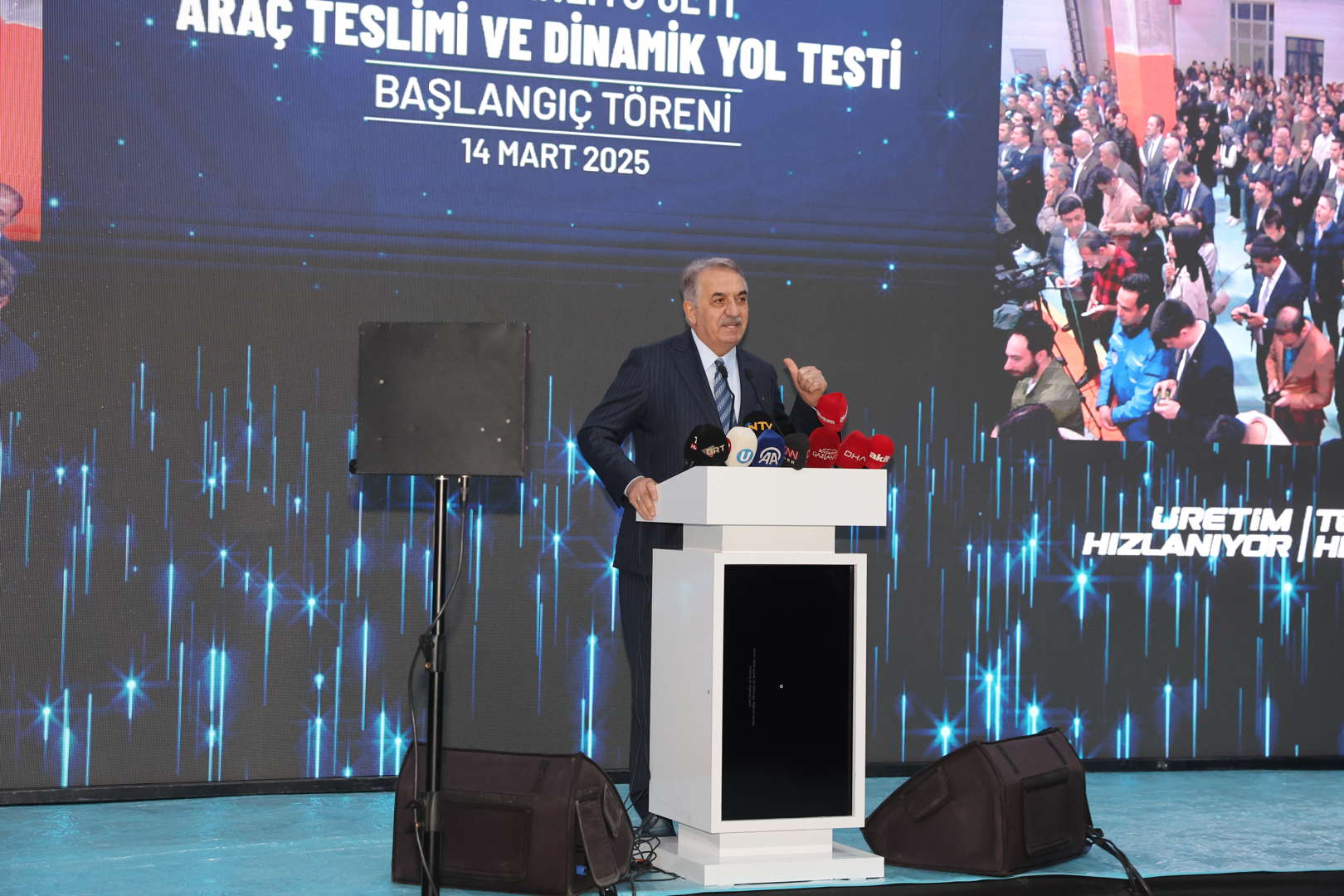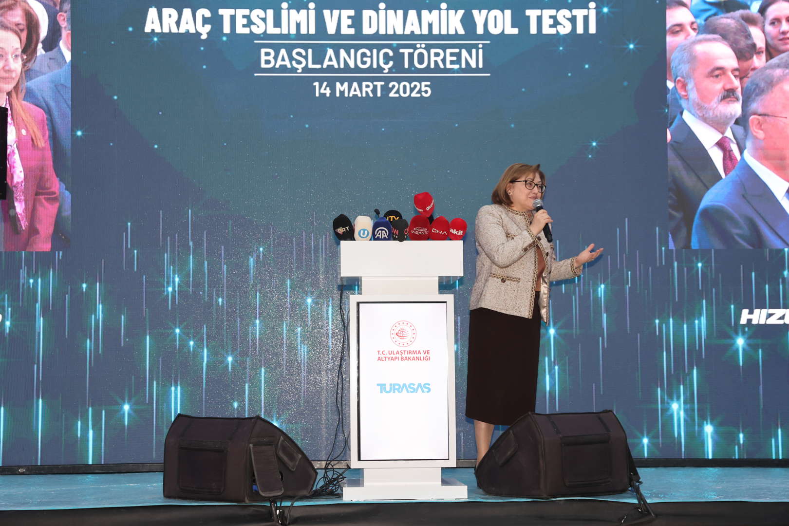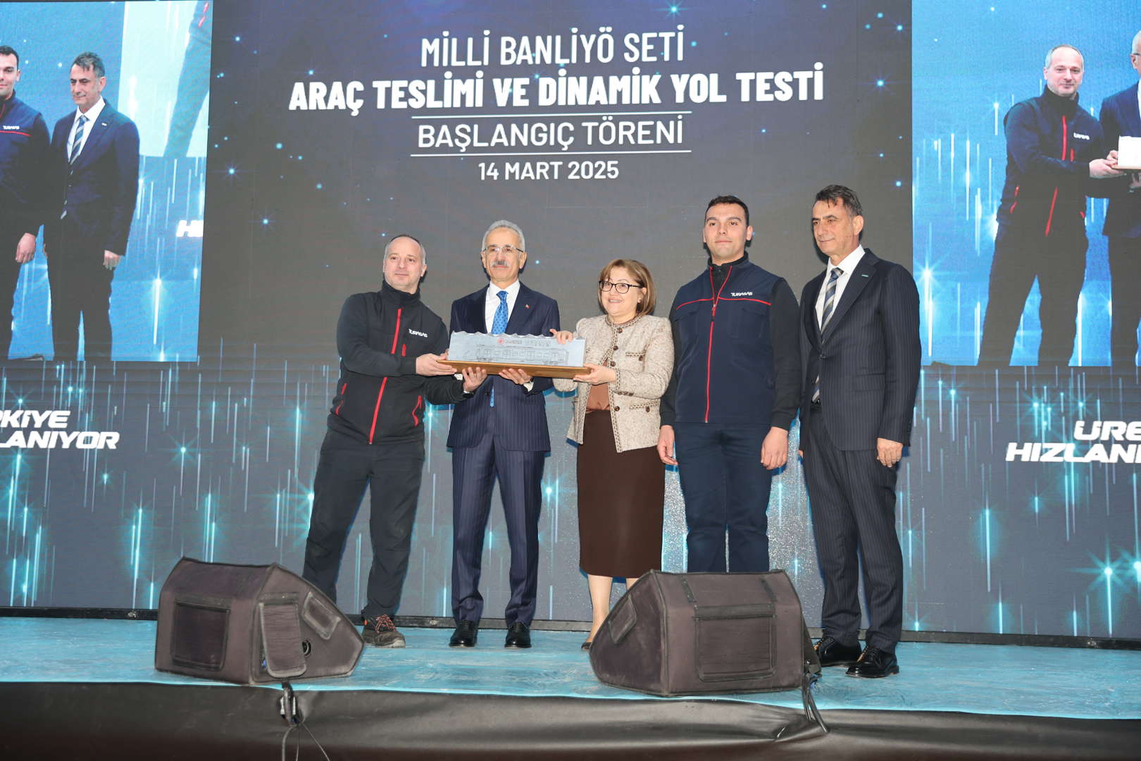 Bu vesileyle ülkemiz için bir mihenk taşı olan projemize verdikleri destekten dolayı Ulaştırma Bakanımız Sayın Abdülkadir Uraloğlu’na hassaten teşekkür ediyorum. En büyük teşekkürü ise, bu milletin istediği zaman her şeyi yapabileceğine dair büyük vizyonunu hepimize aşılayan, iradesiyle her zaman yanımızda olan Sayın Cumhurbaşkanımıza etmek istiyorum. Allah ondan razı olsun. Yolcu kapasitesini 6 kat artıracak olan yeni tren setlerimiz Gazi şehrimize hayırlı uğurlu olsun.